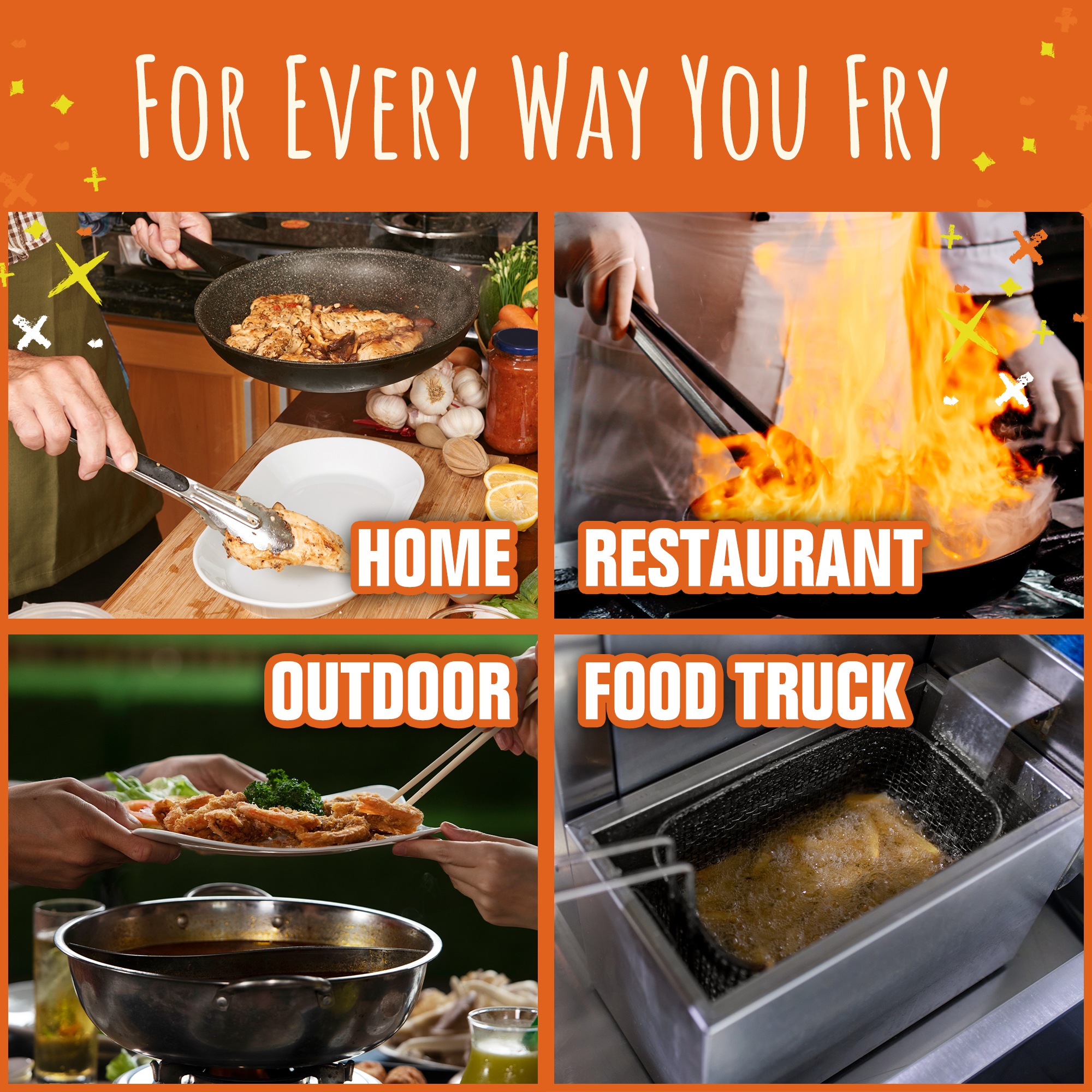 There is no substitute for perfectly fried foods. It's next to impossible to achieve the crunch and tenderness you get when you fry, with any other cooking method. But frying can be messy and cleaning up is no fun.